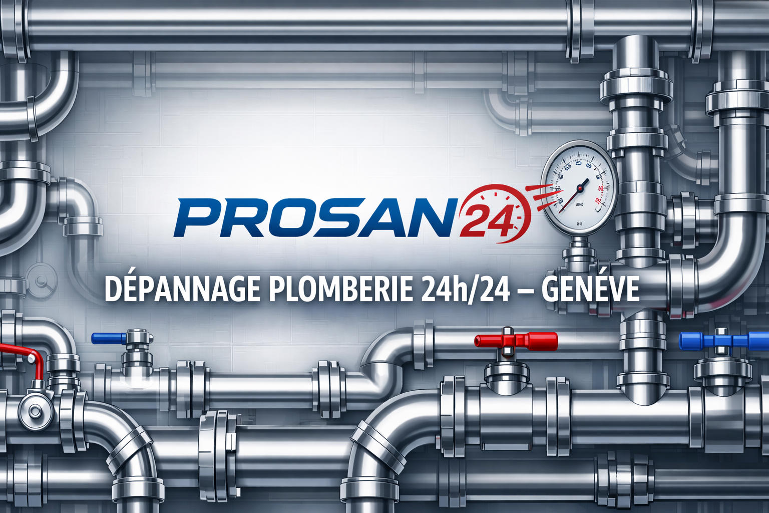 PROSAN24 est une entreprise de plomberie spécialisée dans le dépannage d’urgence à Genève et dans tout le canton. Nous intervenons rapidement pour tout problème de fuite d’eau, débouchage de canalisation, réparation de WC, remplacement de robinetterie ou dépannage de chauffe-eau.