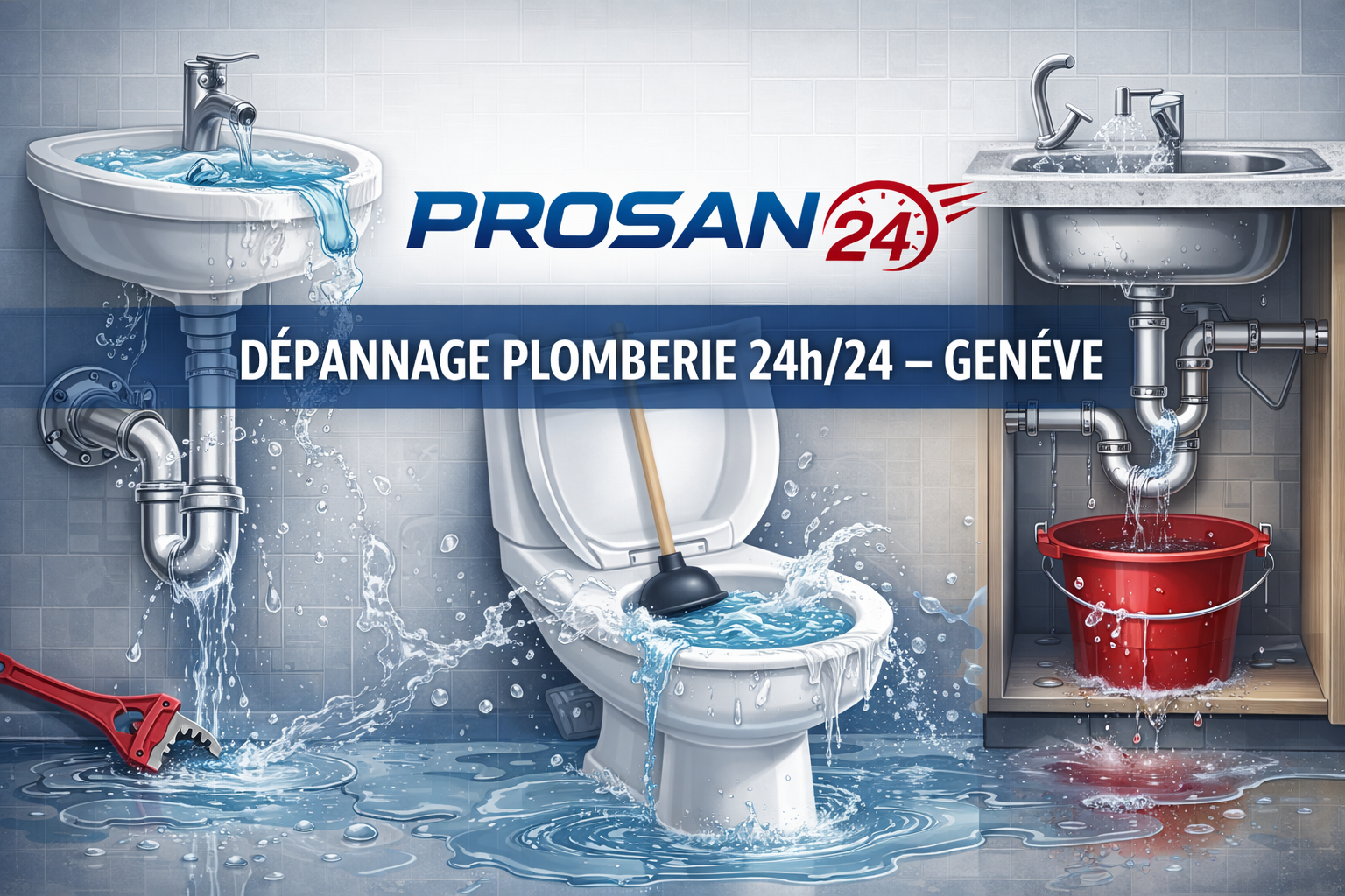 PROSAN24 intervient rapidement pour tous vos problèmes de plomberie à Genève et dans tout le canton.